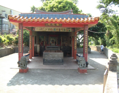 德正神」,旁祀觀世音佛像。祠前設置石獅一對,祠